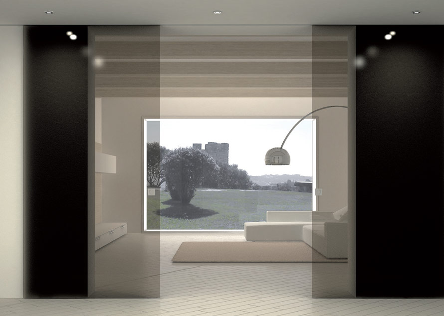 Produkte | Schiebetürsysteme | 1 oder 2 flügelige Schiebetür unsichtbare Laufschiene | V-7100 Invisible Optional Soft-close