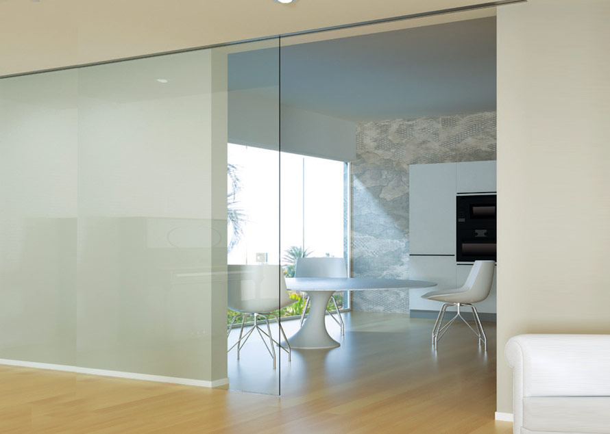 Produkte | Schiebetürsysteme | 1 oder 2 flügelige Schiebetür unsichtbare Laufschiene | V-7150 | V-7160 Invisible Evolution Optional Soft-close