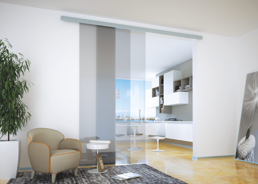 Produkte | Schiebetürsysteme | 2 läufiges Teleskop-Schiebetürsystem mit Optin Festverglasung | V-1820 | V-1870 teleskopisch Sincro Brixia 2 Straßen