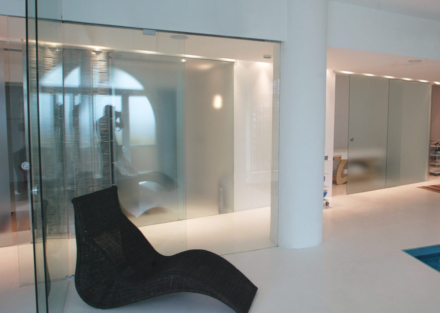 Produkte | Schiebetürsysteme | 4 läufiges Teleskop Schiebtürsystem mit Option auf Festverglasung | V-2450 teleskopisch Sincro 4 Straßen + Fest