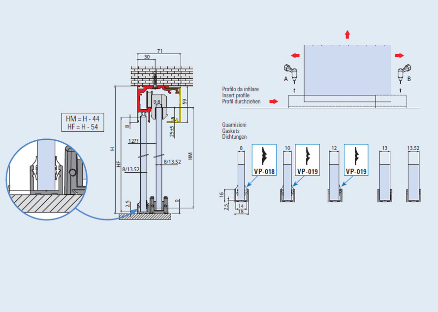 V-2014-MIX U-Profil für Seitenteil, Dichtungen nicht inkl AN - IXE