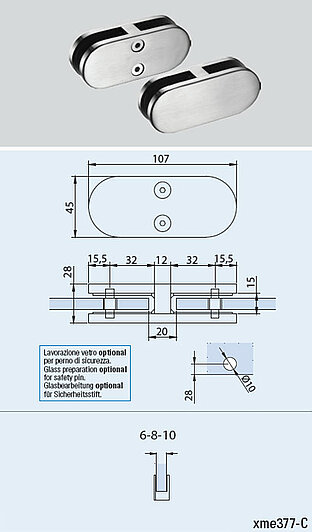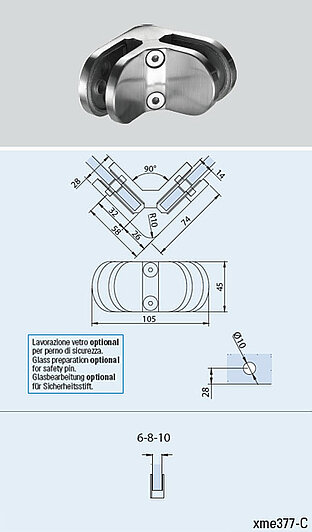 180 ° und 90 ° Glas-Glas-Klemmen in Edelstahl