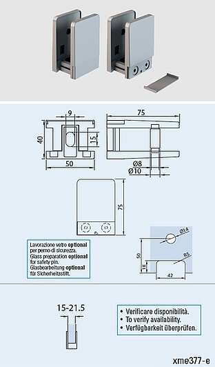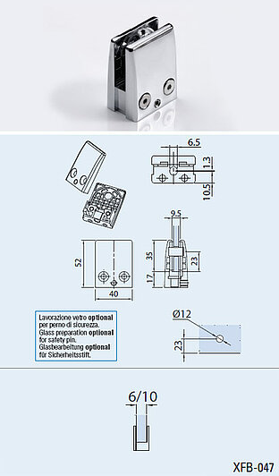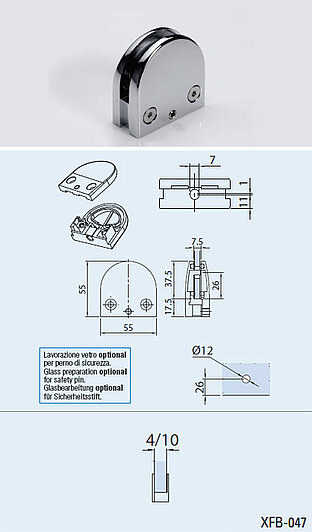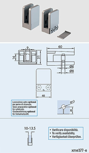 Klemmen aus Zamak/Edelstahl für variable Glasstärken