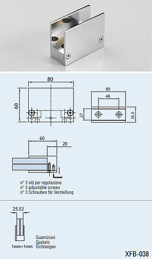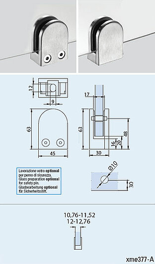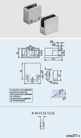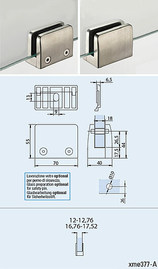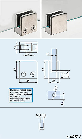 Klemmen ohne Glasbearbeitung für angehobene Glasscheiben