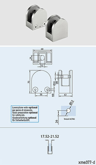 Verglasungsklammern ohne Kerbe im Glas für angehobene Gläser